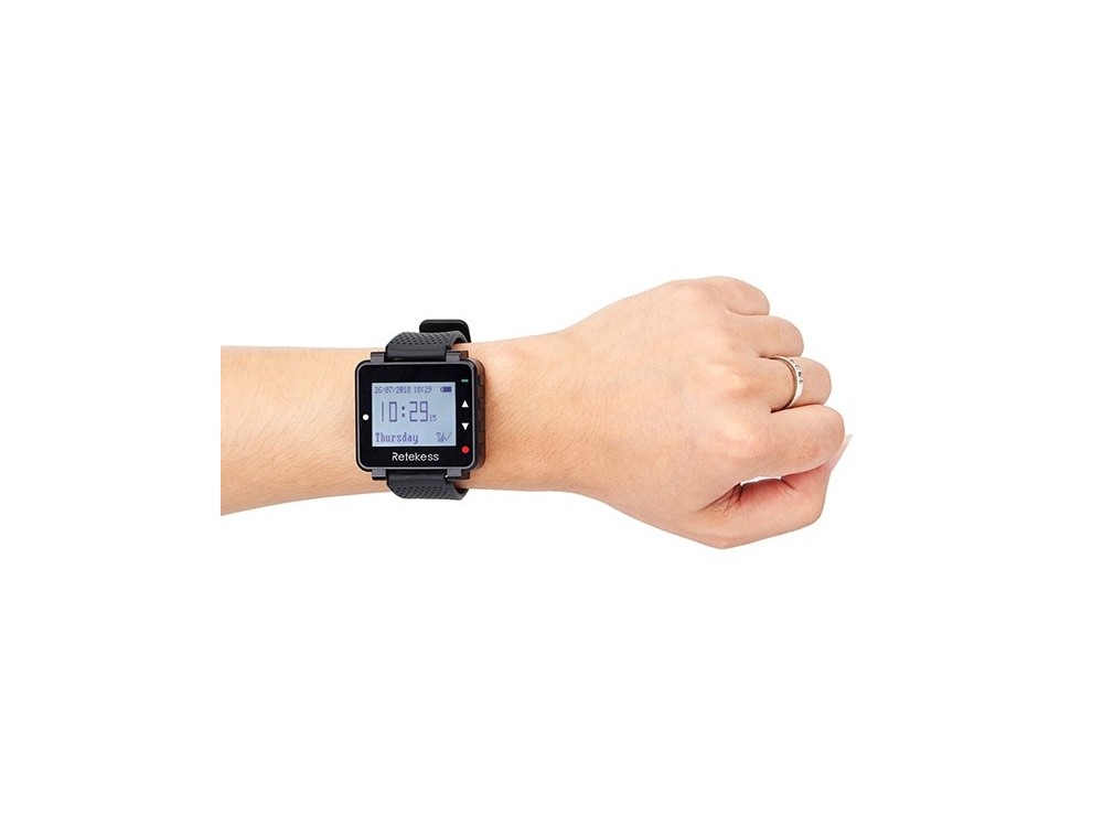 Zegarek umieszczony na nadgarstku kelnera wibruje lub wydaje dźwięk.