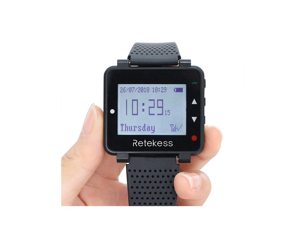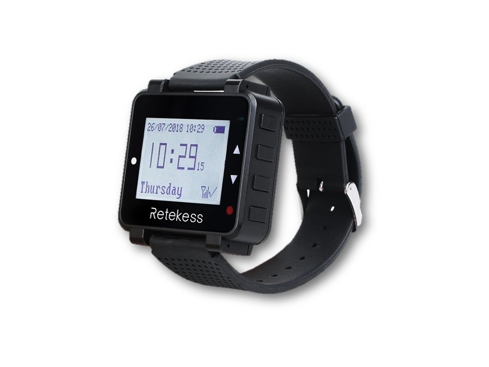 Zegarek umieszczony na nadgarstku kelnera wibruje lub wydaje dźwięk.