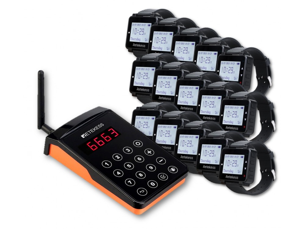 Zegarek umieszczony na nadgarstku kelnera wibruje lub wydaje dźwięk.