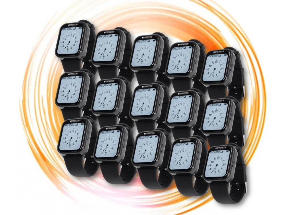 Zegarek reaguje na wezwanie kuchni (baza przywołująca kelnerów) i/lub na wezwanie klienta (guzik umieszczony na stoliku). Skomponuj zestaw jaki tylko chcesz!